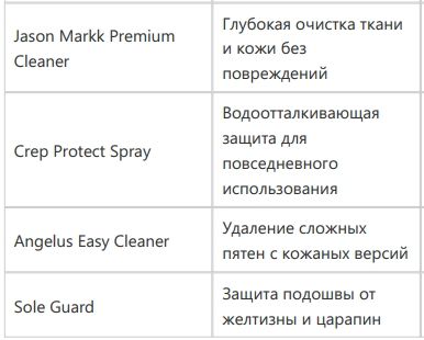 - Чистящие гели: Jason Markk Premium Cleaner, Crep Protect — безопасны для всех типов материалов.